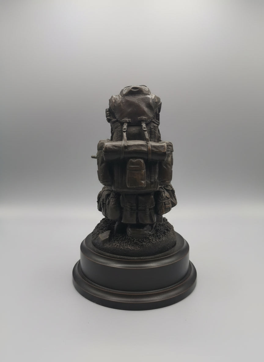 This distinguished 8.5" (Including presentation base) cold cast bronze resin sculpture captures a Royal Signals Signaller in authentic operational detail. The figure is expertly rendered in a tactical crouch, equipped with webbing, SA80 rifle, and radio nestled in his bergan—reflecting the essential role of military communications. Meticulously crafted for collectors and serving personnel alike, this commemorative sculpture honours the dedication and professionalism of British Army signallers. An ideal tribute for barracks, offices, or personal collections.