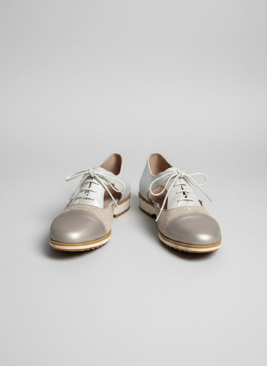 Dorking By Fluchos Lace-Up Brogues Silver Cut-Out Shoes UK 7 EU 40