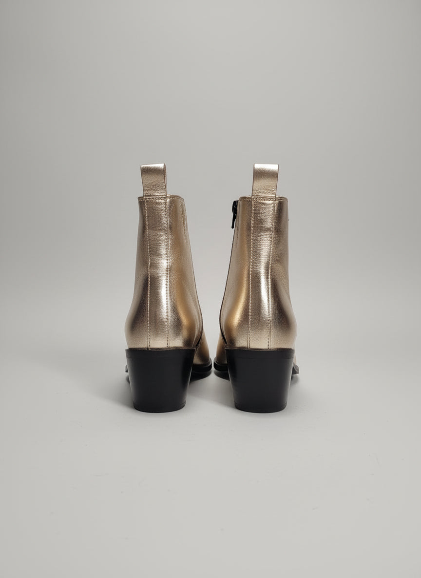 Dune Gold Heeled Boots UK 7 EU 40 Block Heel Ankle Pointed