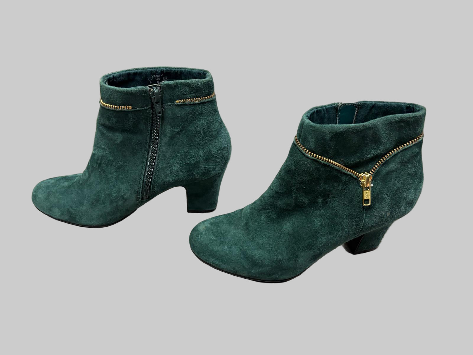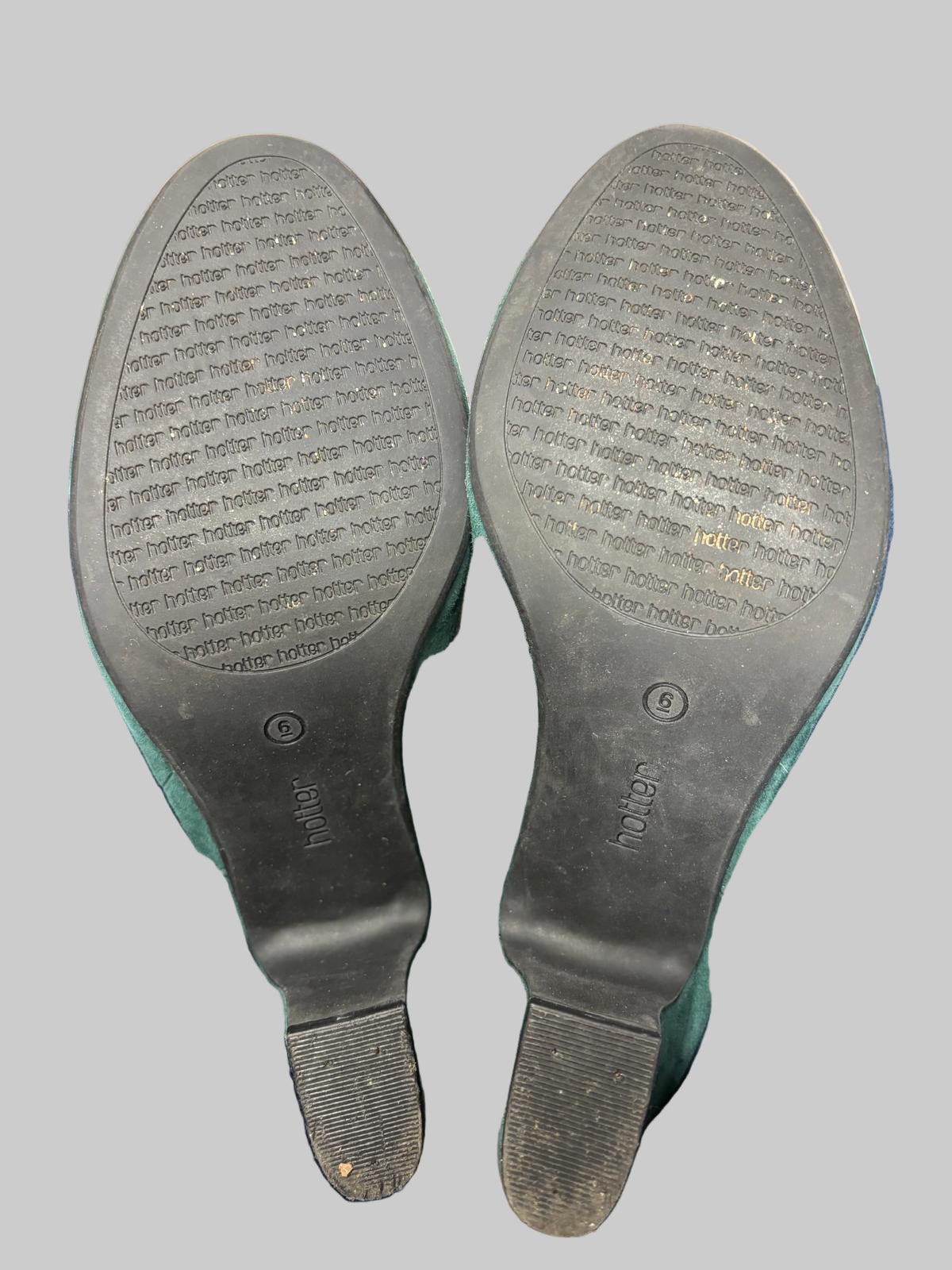 Hotter Emerald Green Suede Heeled Shoe Boots Gold Zip UK Size 6