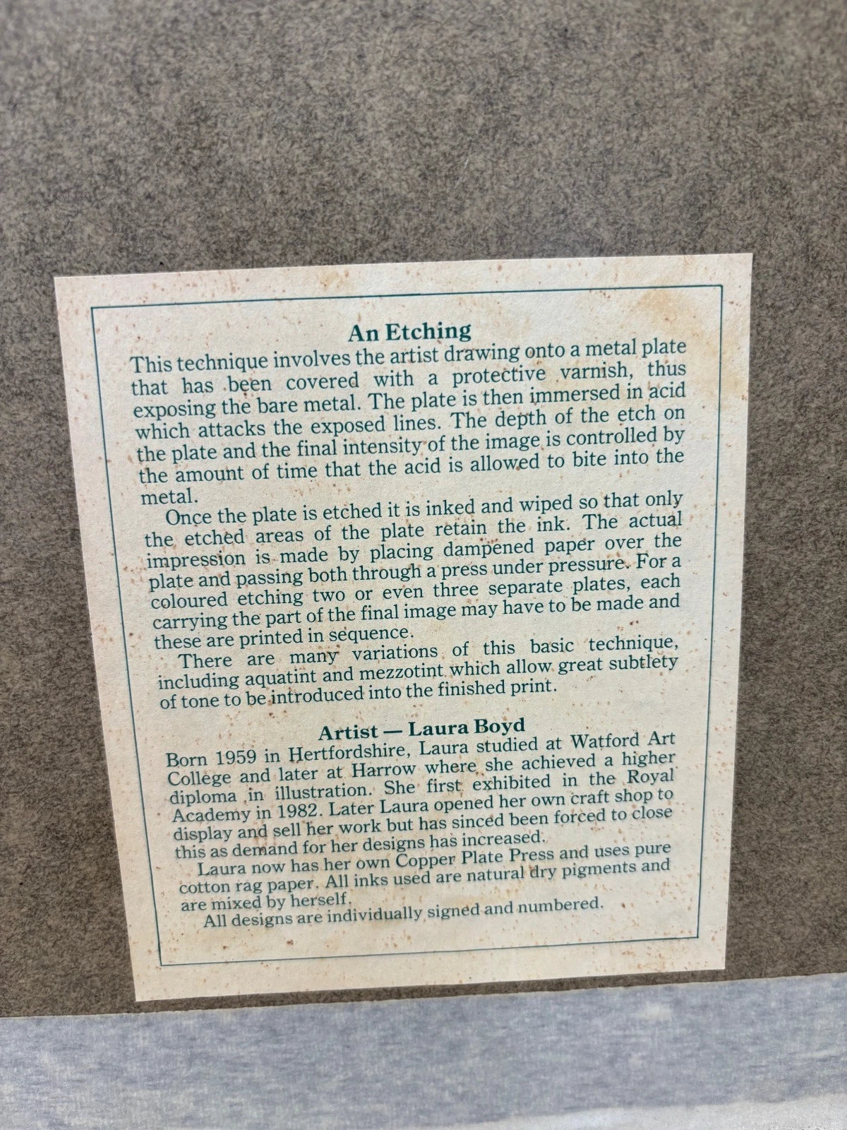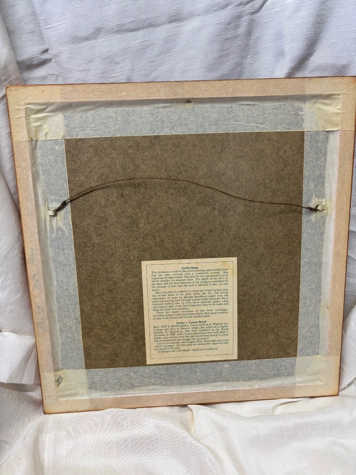 Framed Limited edition etching White Cat 112/250 'Poppy Patrol' by Laura Boyd