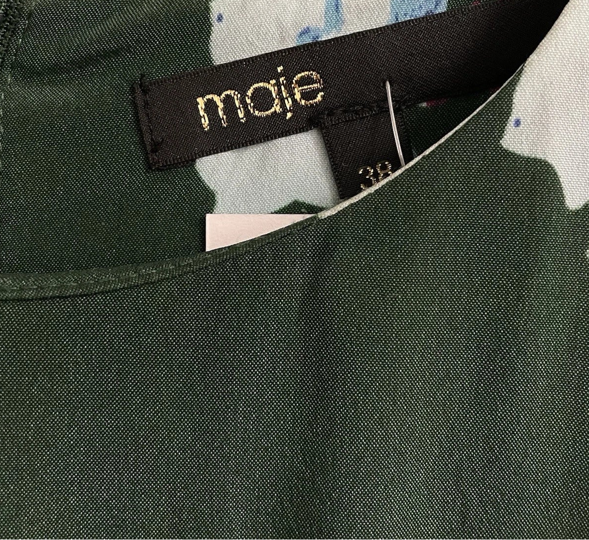 MAJE Green Floral Dress UK 10 EU 38 Pleat Swing Tea Dress Silk-Blend