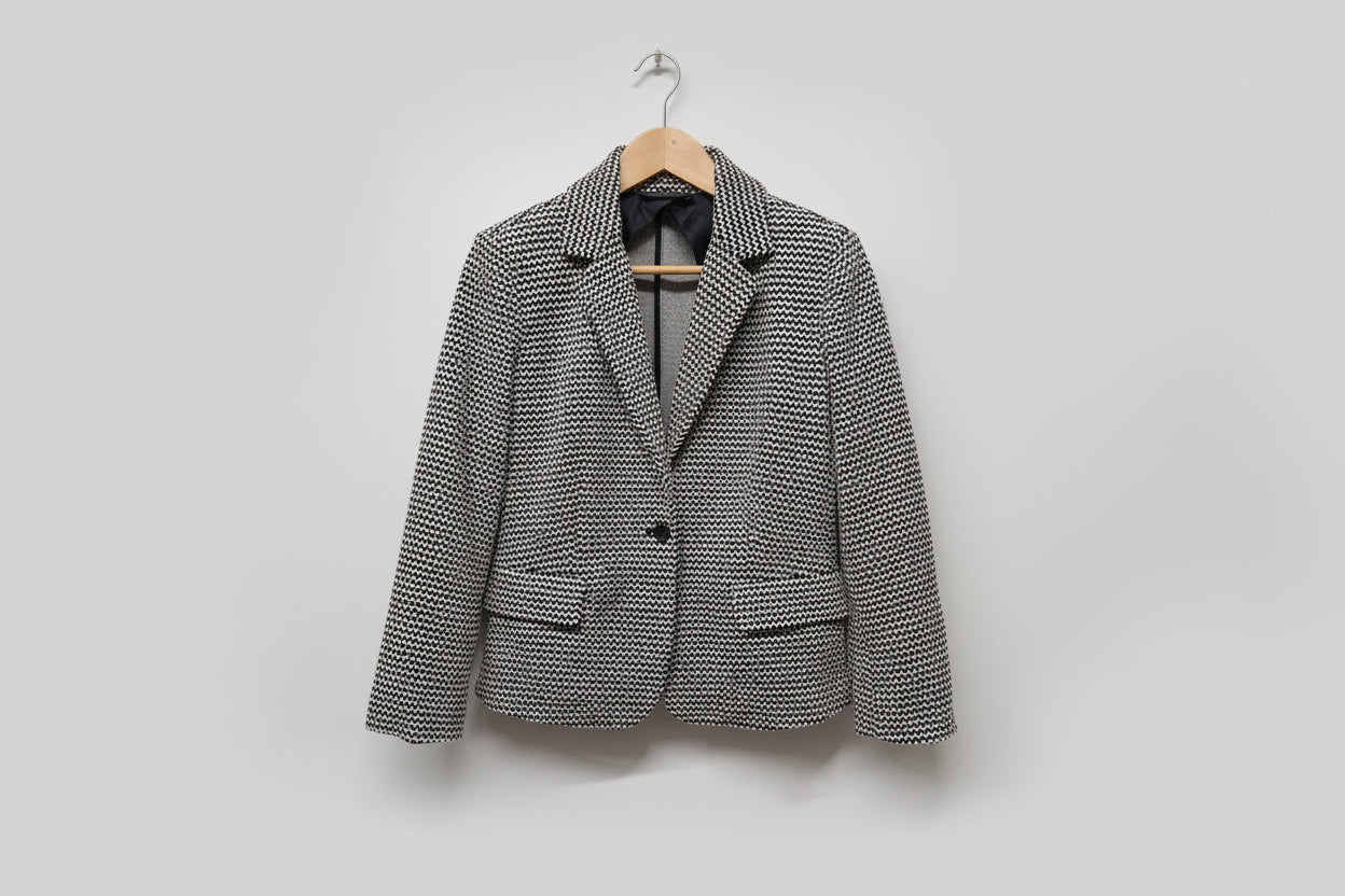 Max Mara Black White Blazer UK 8 EU 36 Jacket Buttoned Geo Zig-Zag