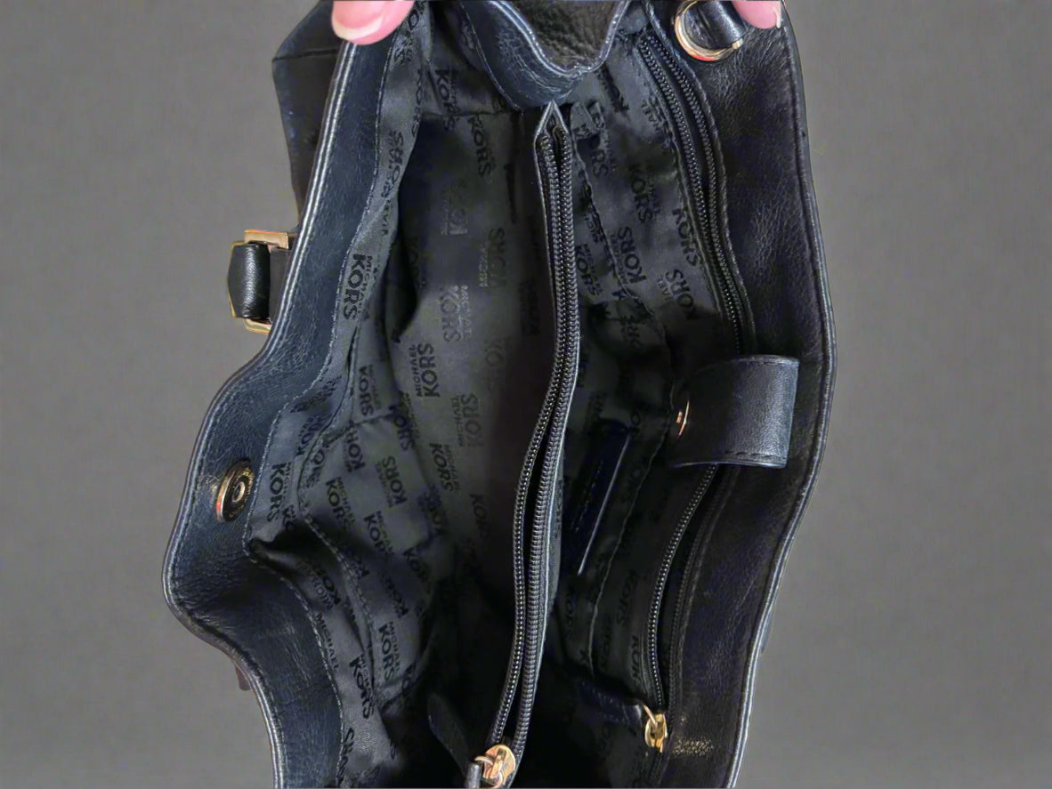 Michael Kors Black Leather Handbag with Gold Metalwork