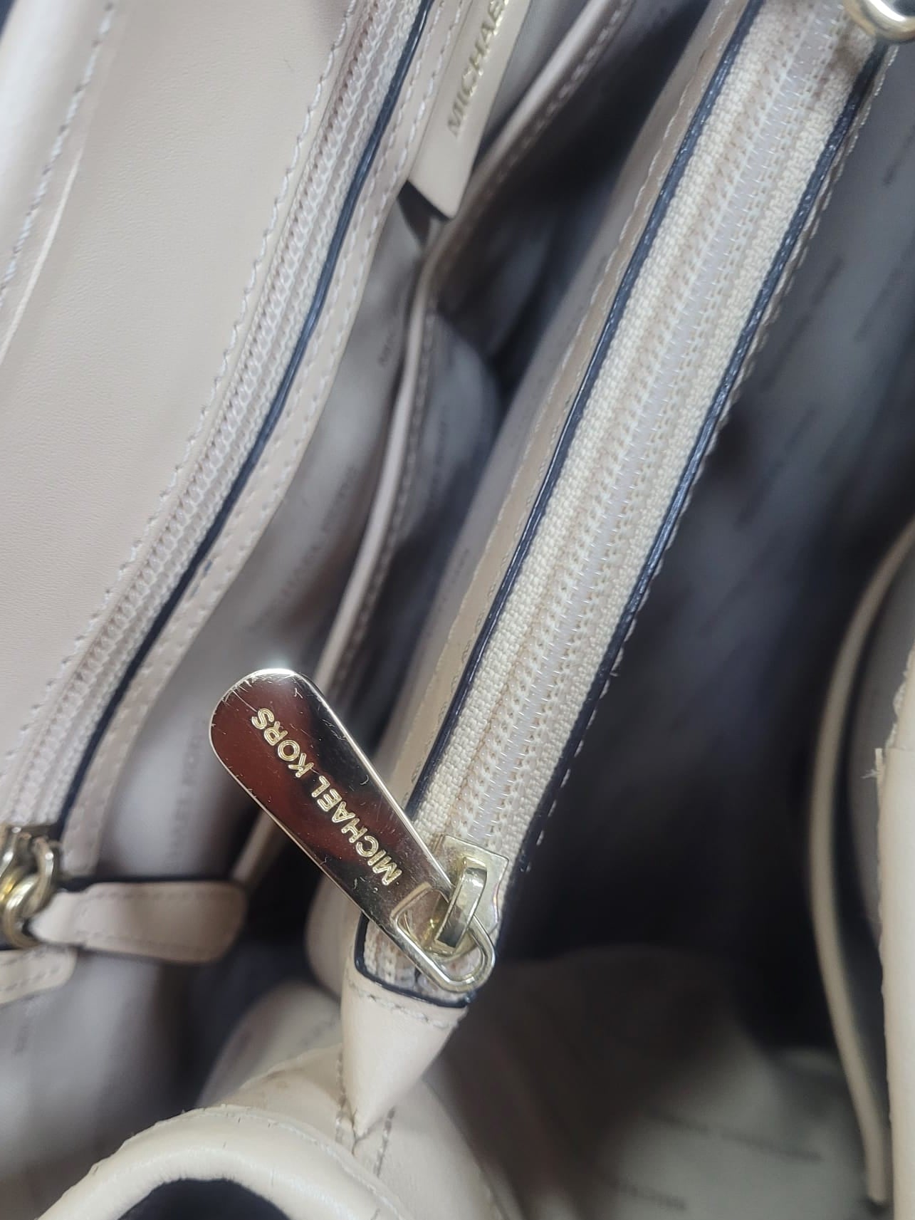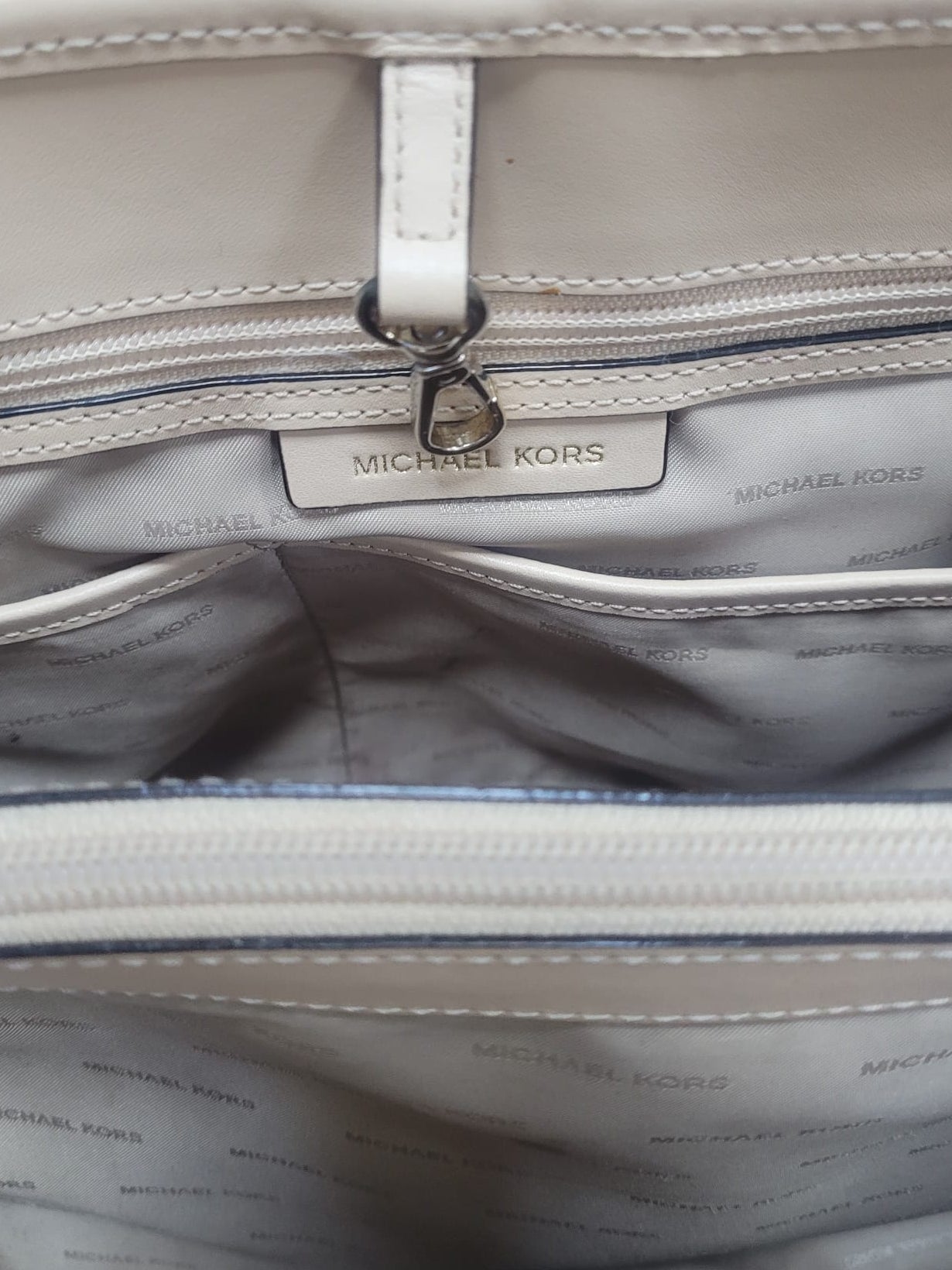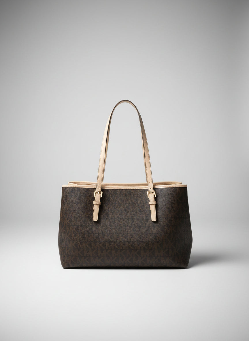 Elevate your everyday carry with this iconic Michael Kors Jet Set tote, crafted in rich brown leather with the signature MK monogram pattern. Designed for the discerning professional, this structured silhouette features dual handles and a spacious interior, accommodating laptops, documents, and personal essentials with ease. The refined aesthetic transitions seamlessly from office to weekend, while quality construction ensures lasting durability. A timeless investment piece that combines functionality with luxury appeal.