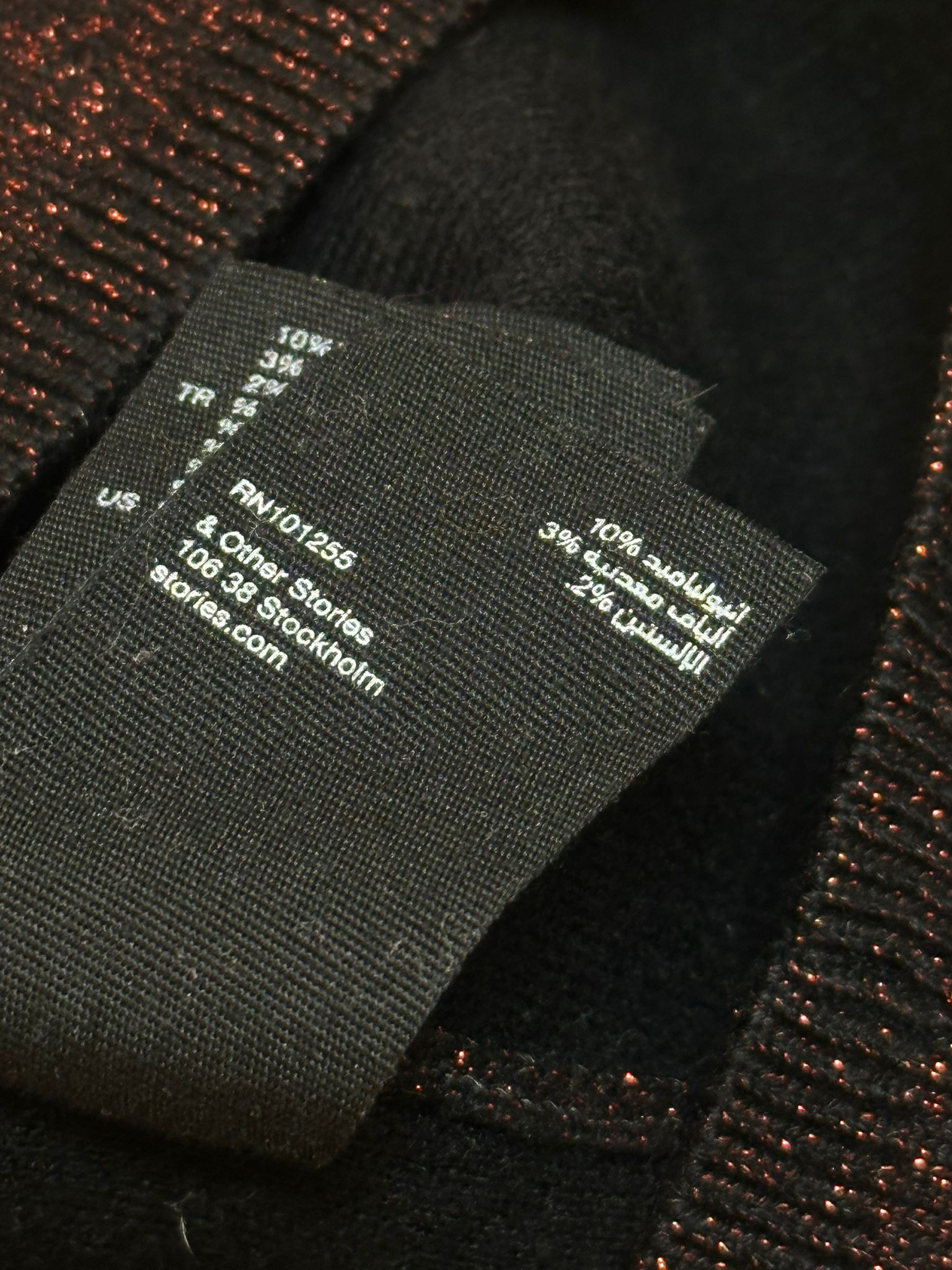 Make a statement with this & OTHER STORIES jumper, where classic black meets eye-catching red sparkles for a look that's equal parts sophisticated and fun. The medium fit offers comfortable everyday wear with just enough shimmer to turn heads. Perfect for layering over basics or wearing solo when you want to add a touch of festive flair to your wardrobe. A versatile piece that bridges casual and occasion wear effortlessly.