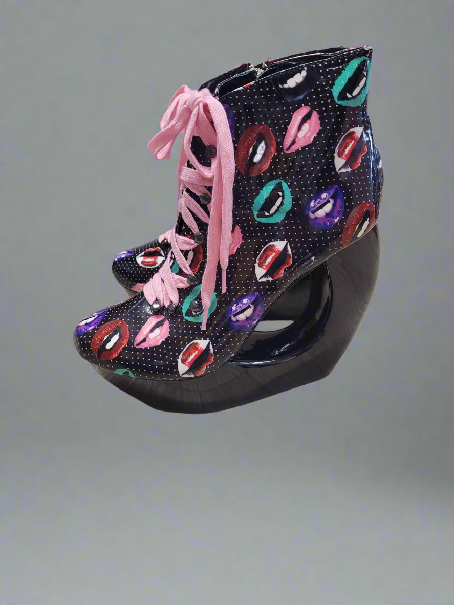 Rat Baby Boot Shoes UK Size 7 EU 40 Patent Black Lip Print