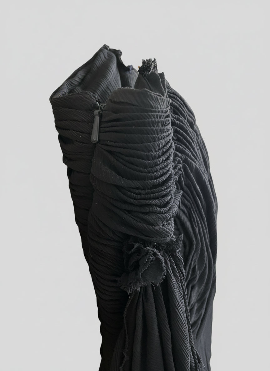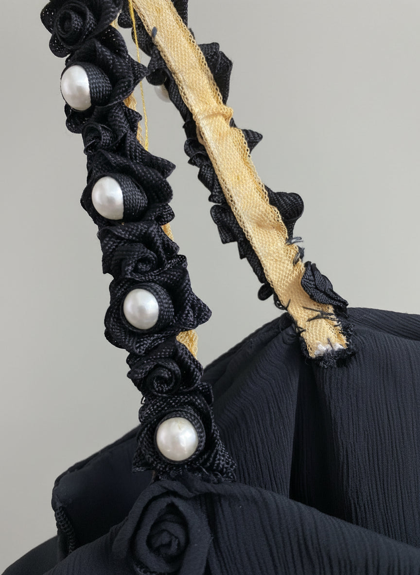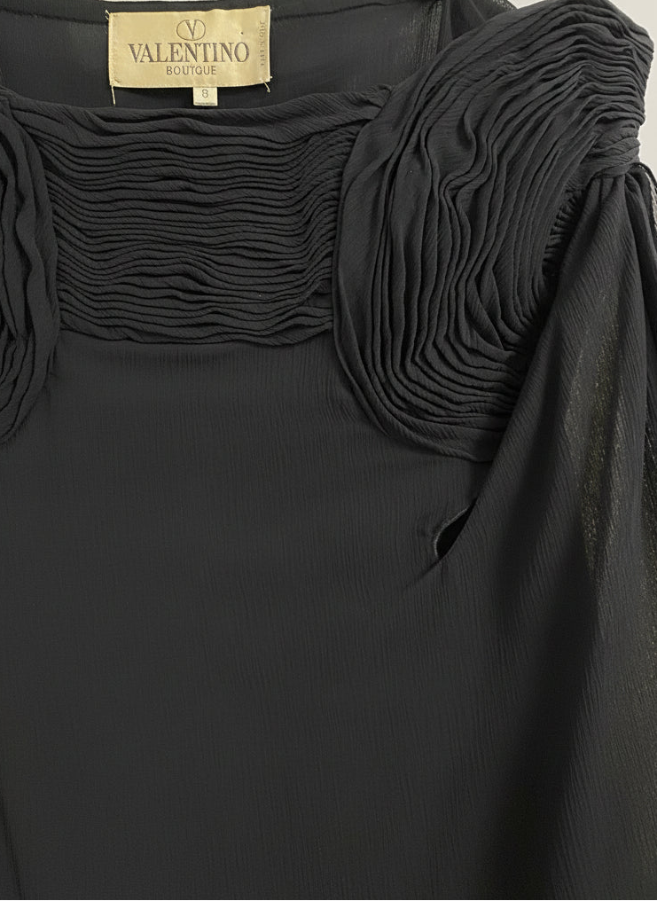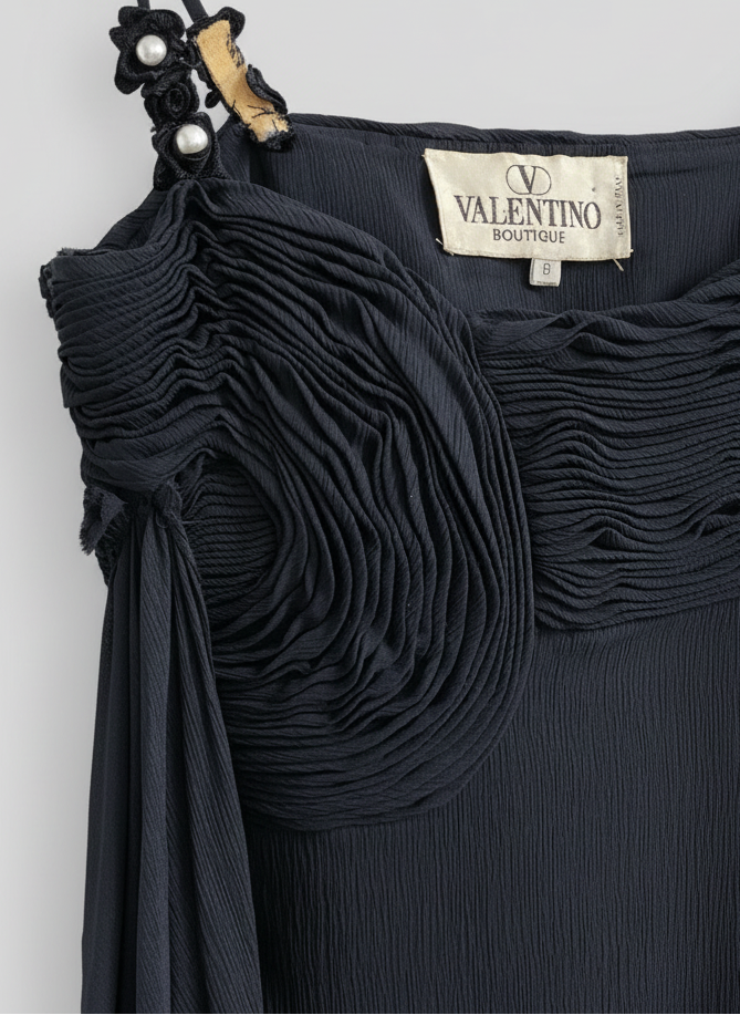 S/S 1995 Valentino Garavani Runway Navy Crepe Chiffon Pearl Ruched Mini Dress