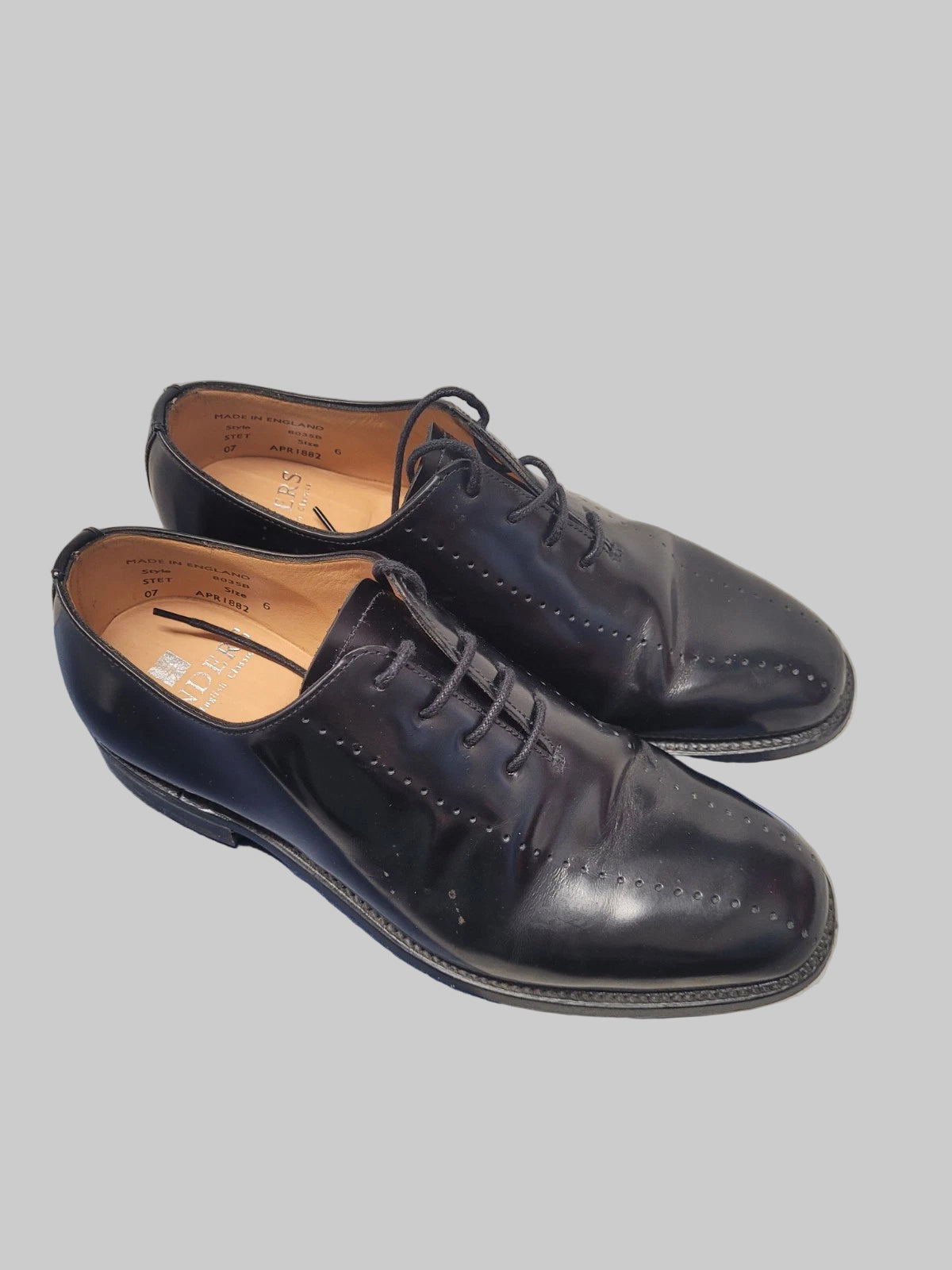 Sanders Black Leather Oxford Shoes UK 6 Berkeley Patent Lace-Up