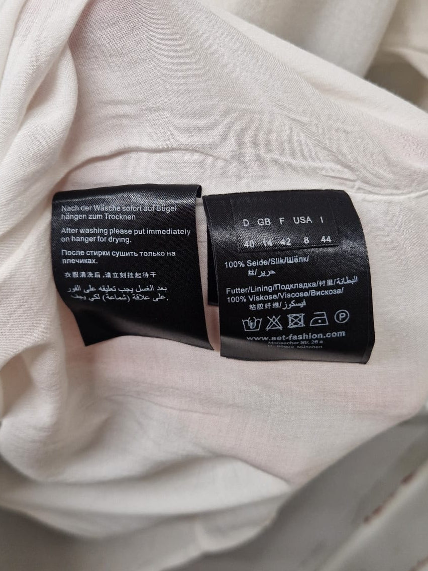 SET Blue & White Ombre Silk Smock Tunic (M) UK 10 12 EU 38 40 Cut-Out Shoulder