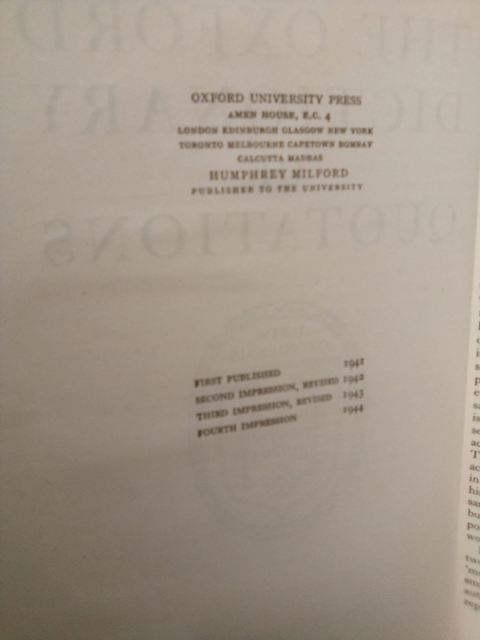 The Oxford Dictionary of Quotations- Fourth edition 1944