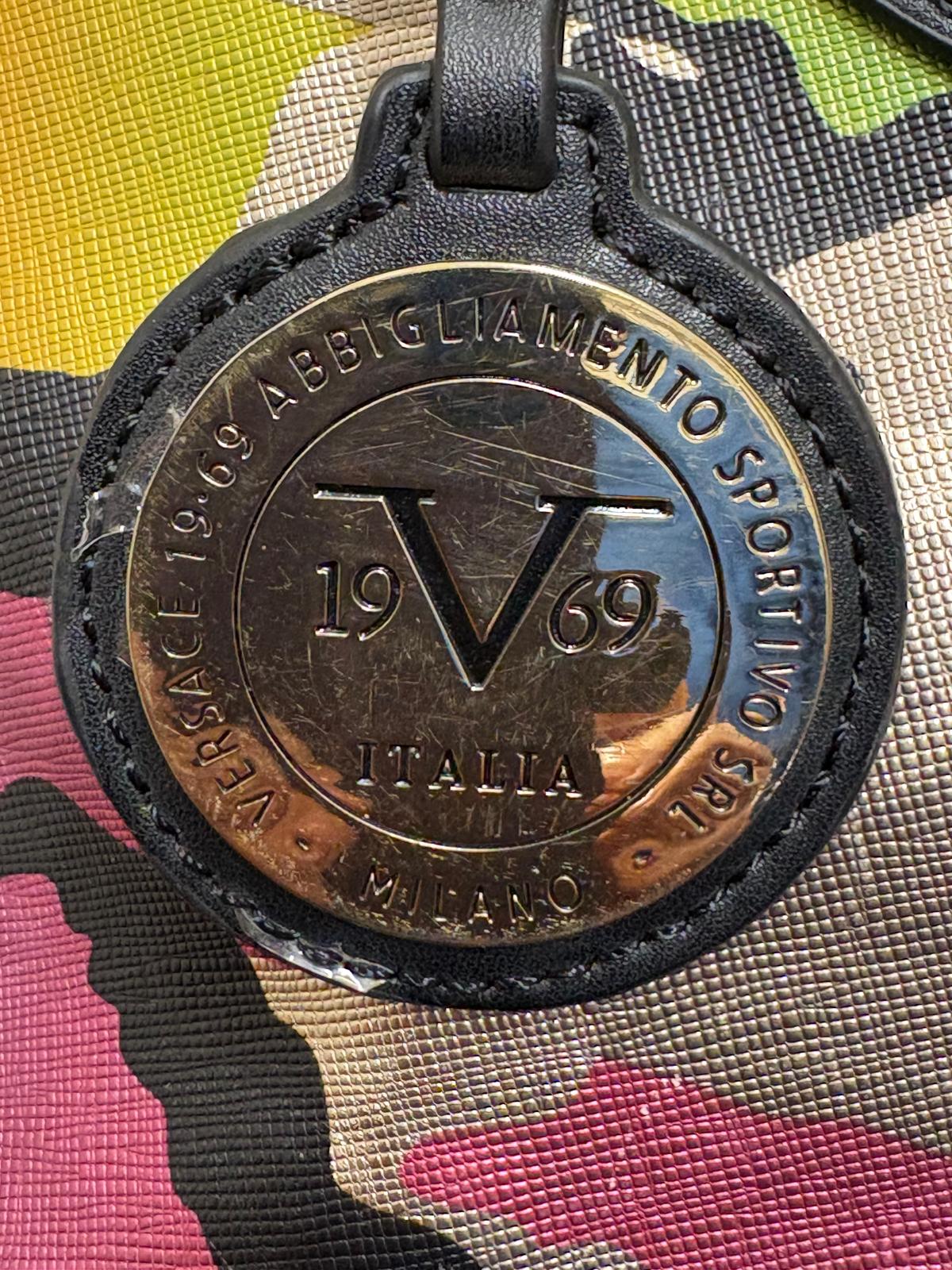 Versace Rainbow Army Metallic Print Handbag Double Handle